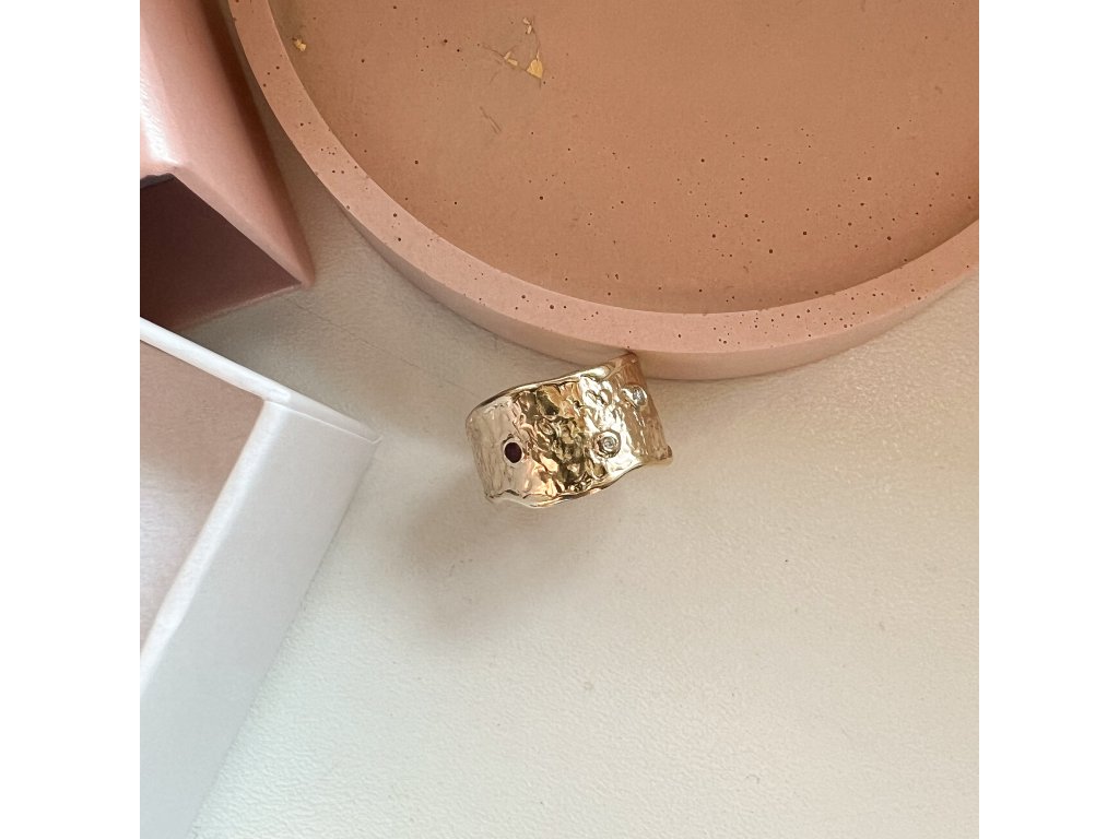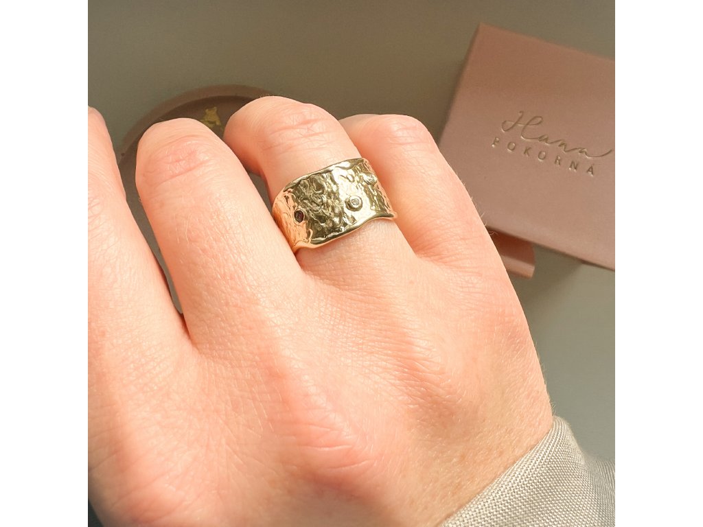 PRSTEN TOUCH žluté zlato 585, brilianty, granát